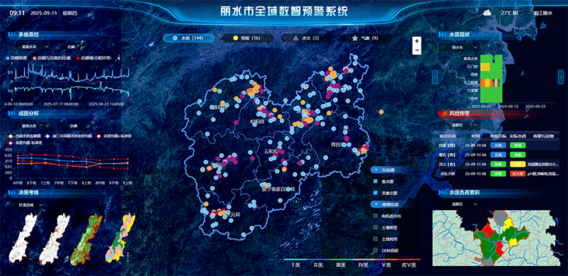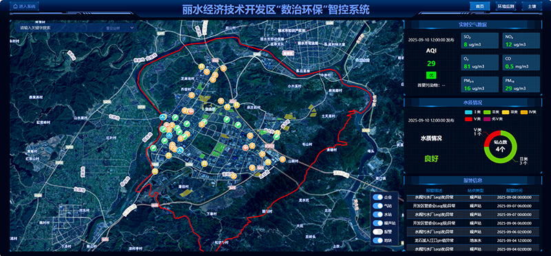 2020年,浙江省环保集团丽水生态环境科技有限公司以丽水市生态环境质量监测网络项目为基石成立,依托先进的GIS与数据可视化技术,精心打造了全域生态环境监测预警系统。该系统共接收474个站点数据,其中丽水环科自建站点329个,实时汇聚了全市水域、大气、噪声、辐射、雷达等多元监测数据,日均处理数据30万条,通过智能感知网络实现全要素环境数据的统一管理与协同分析,使被动的环境治理转向主动的环境预警。
