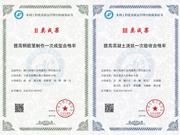 近日,从中国水利工程协会传来喜讯,环保集团下属浙钱水建公司四个质量攻关课题荣获2021年度QC成果奖。